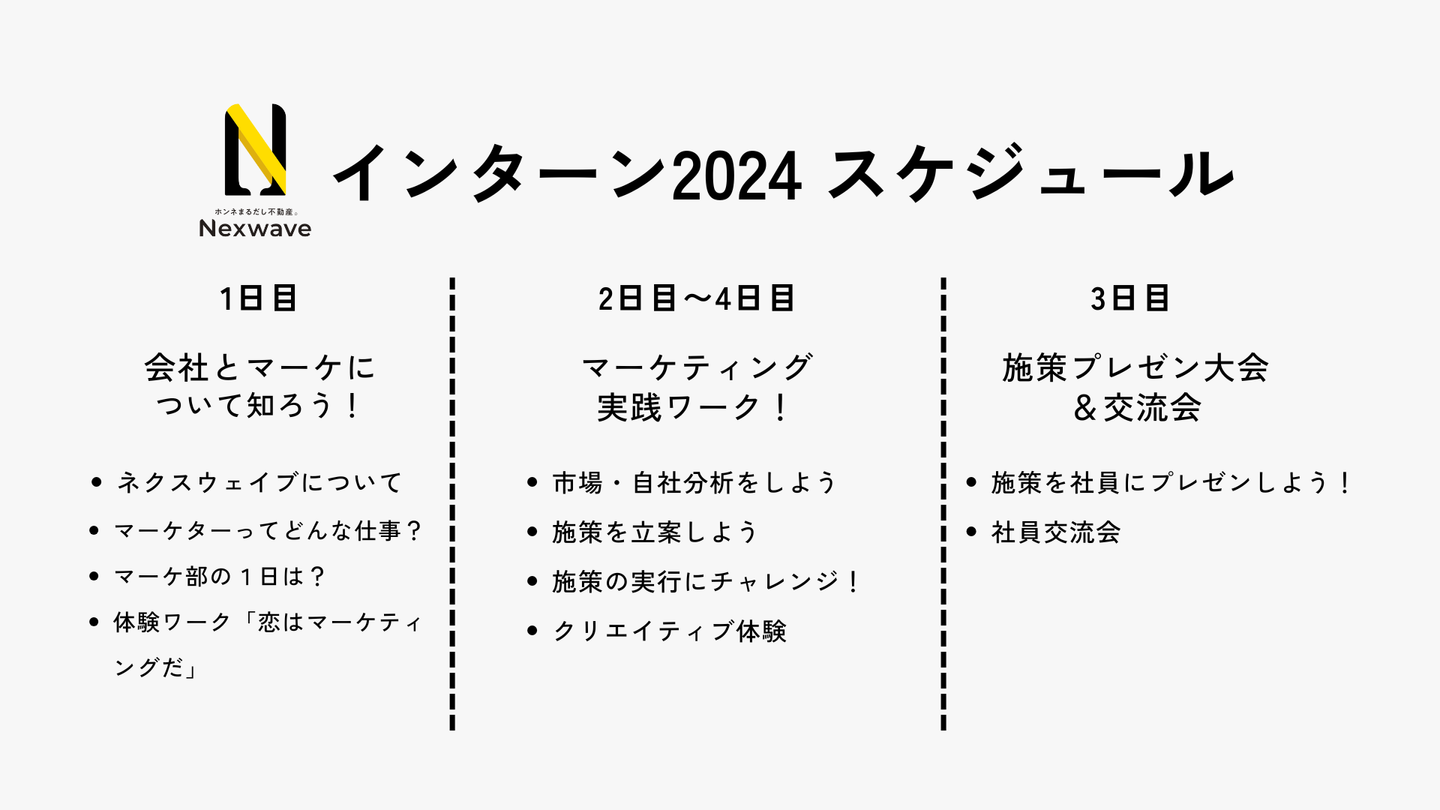 夏も近づき、夏季インターンシップをお探しの大学生も多いのではないでしょうか?ネクスウェイブでは今年も、マーケティング部の仕事が学べる1週間インターンシップを開催します。