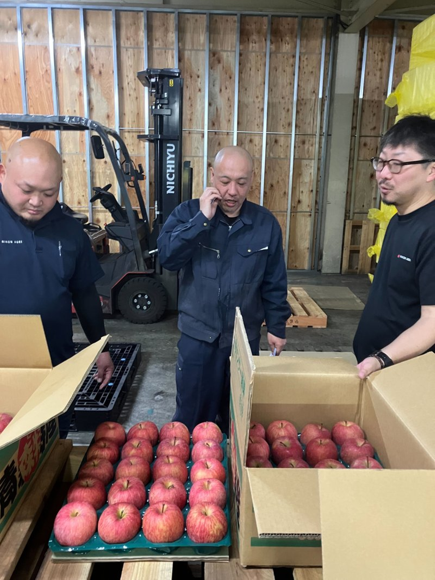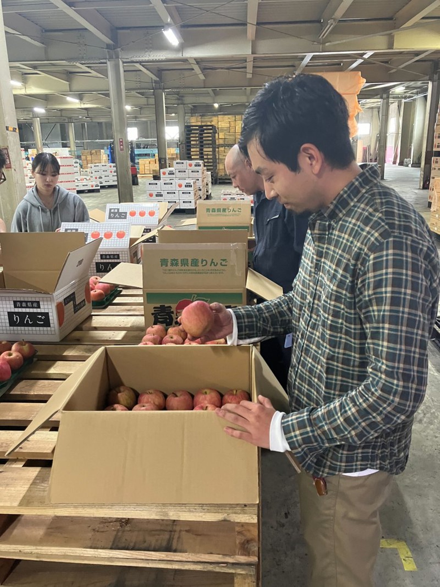 疋田拓也:りんご流通事業部 製造部門 品質管理課(写真中央)