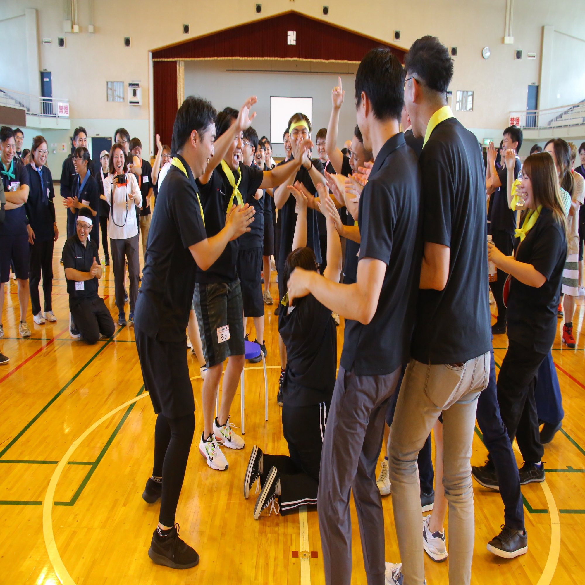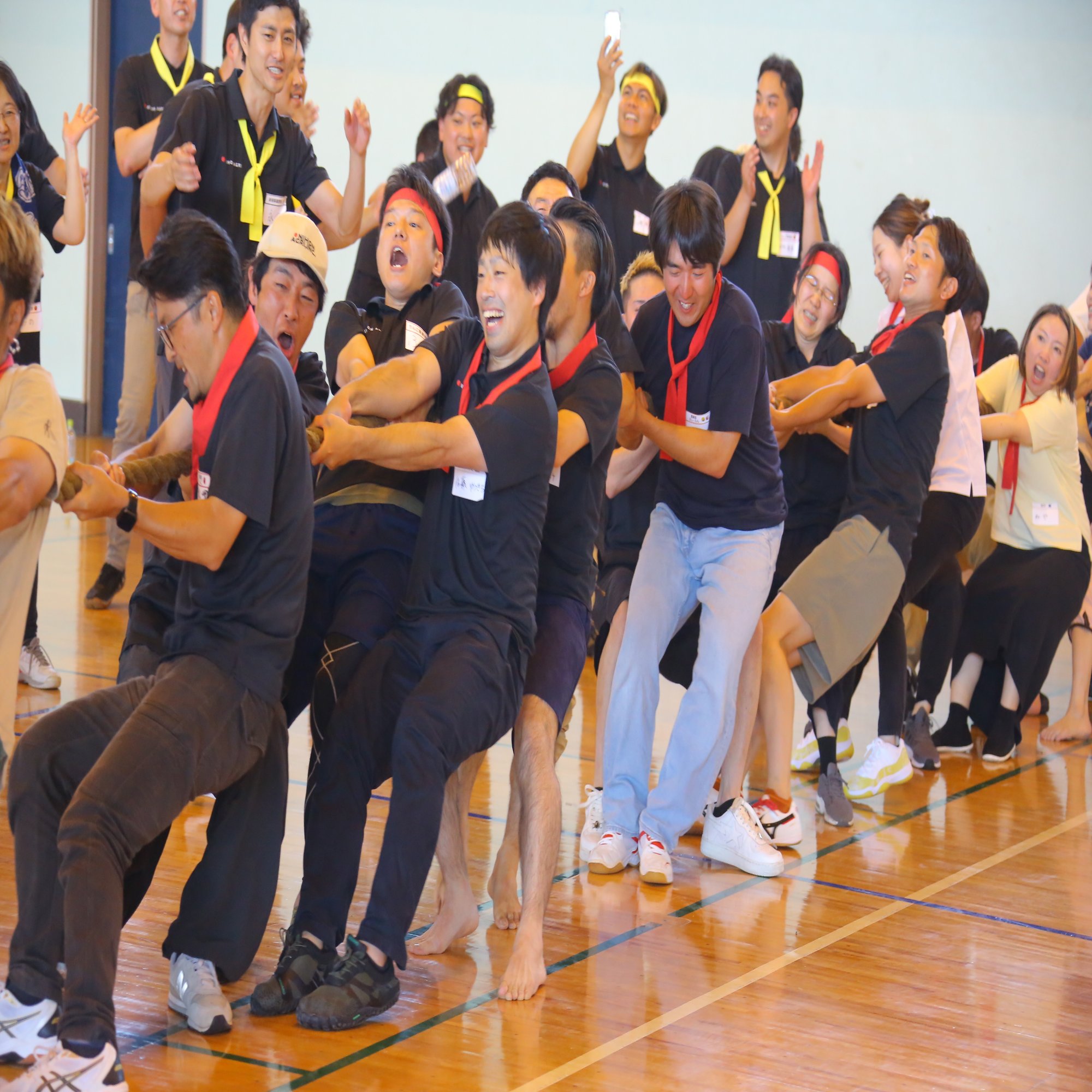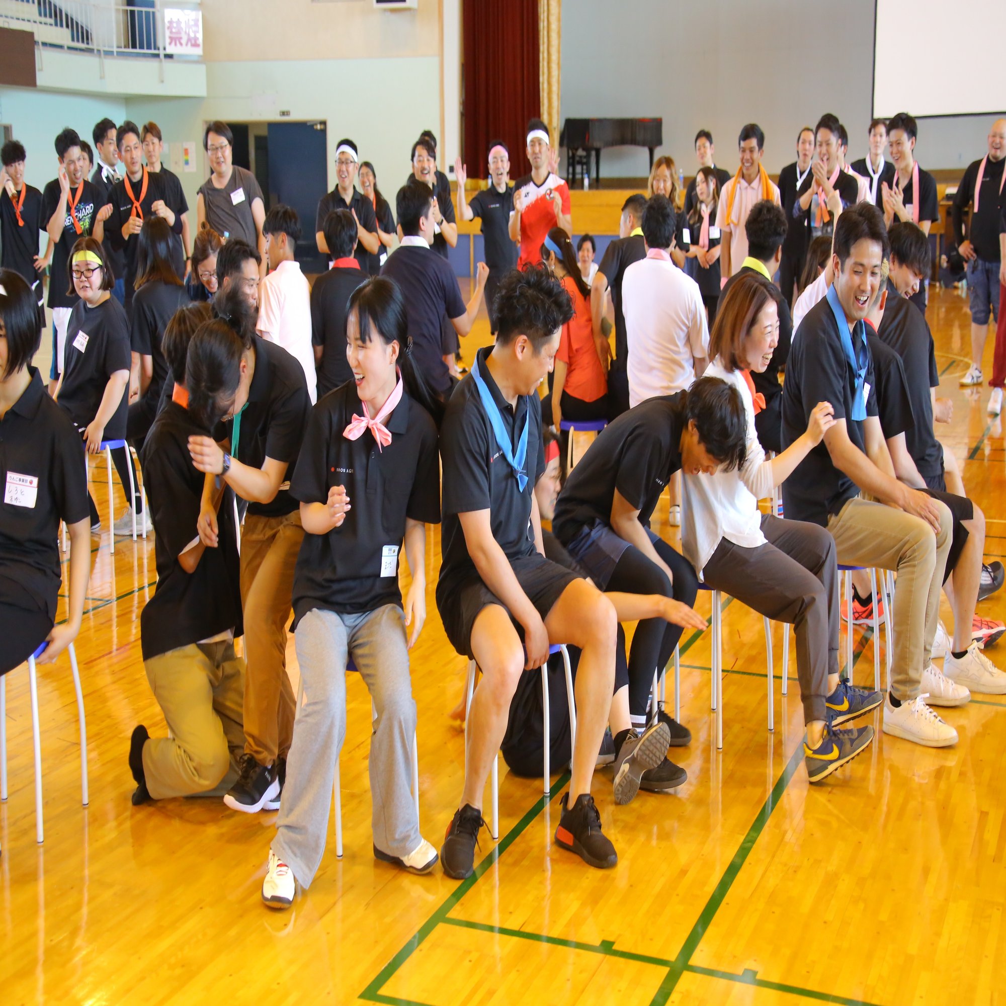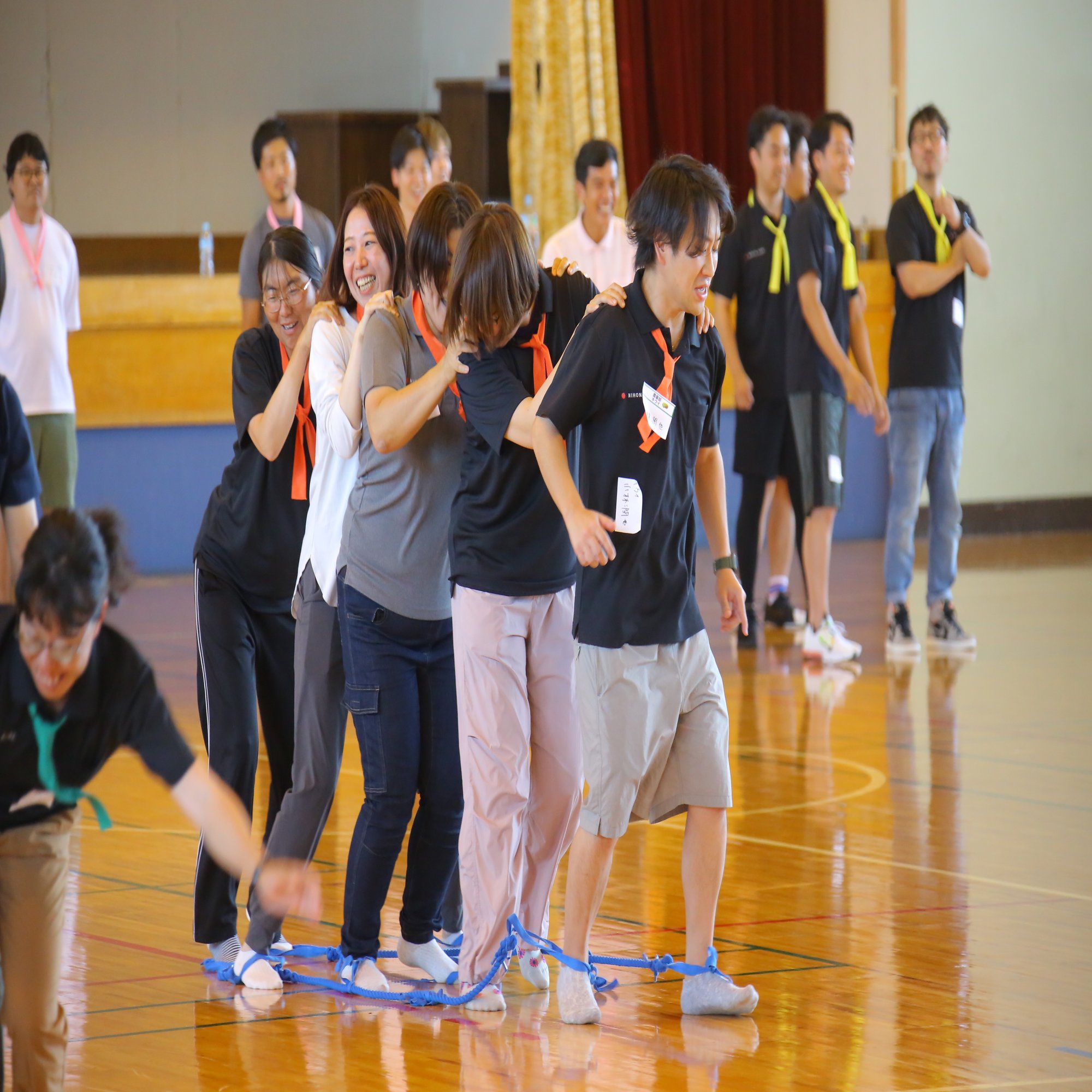 各チーム、スムーズにバトンタッチを行えるよう、作戦タイムで入念に準備を行い、激戦のムカデ競争でした🐛