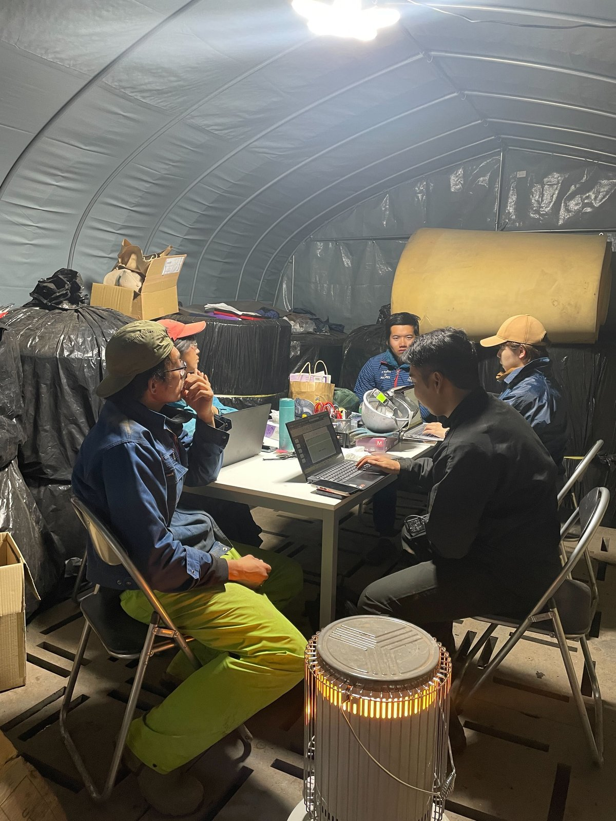 圃場に隣接したテントの中で仕事をしています。意外と環境を整えると快適なのです。