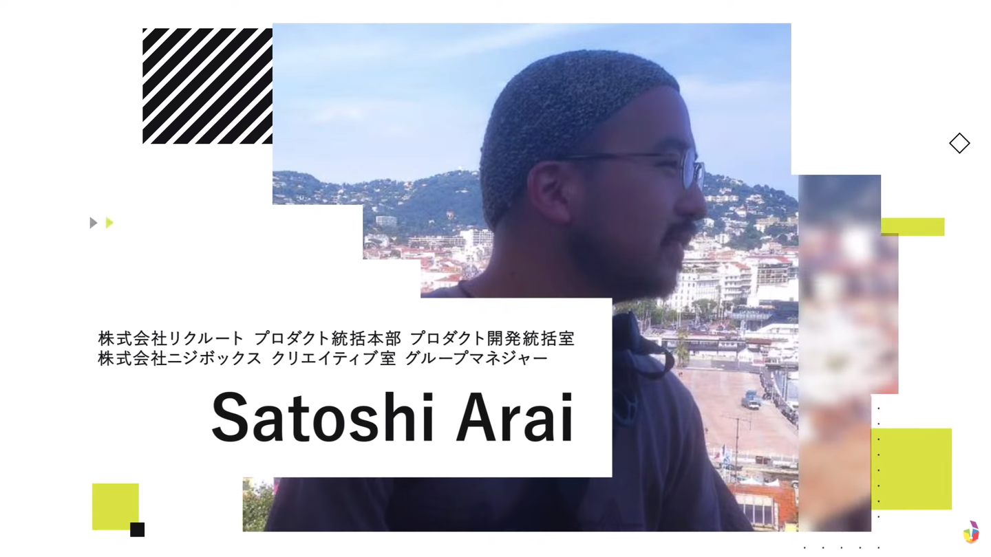 「SUUMOでのパフォーマンス」と題して登壇したのは、リクルートでWebアプリケーションの開発・設計に携わりながら、ニジボックスのクリエイティブ室でマネジャーを兼務する新井智士さんです。