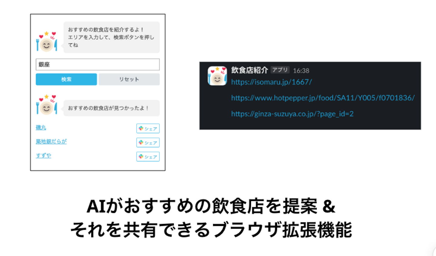 ①AIでエリアからおすすめの飲食店を提案&Slackに共有するブラウザ拡張