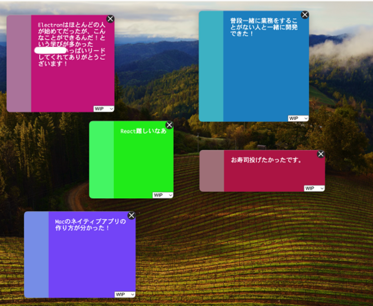 ②画面上に付箋メモを投げたり落としたりできるデスクトップアプリ