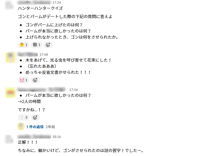 # ハンターハンター好きが集まるチャンネルで突然始まるハンターハンタークイズ