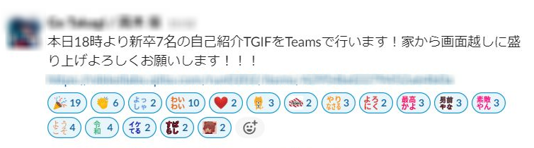 新人さんの自己紹介でしたので、趣味や出身地、特技が披露されると先輩社員が合いの手入れたり、チャットでコメントが入ったりと、参加者同士でも大いに盛り上がりました。