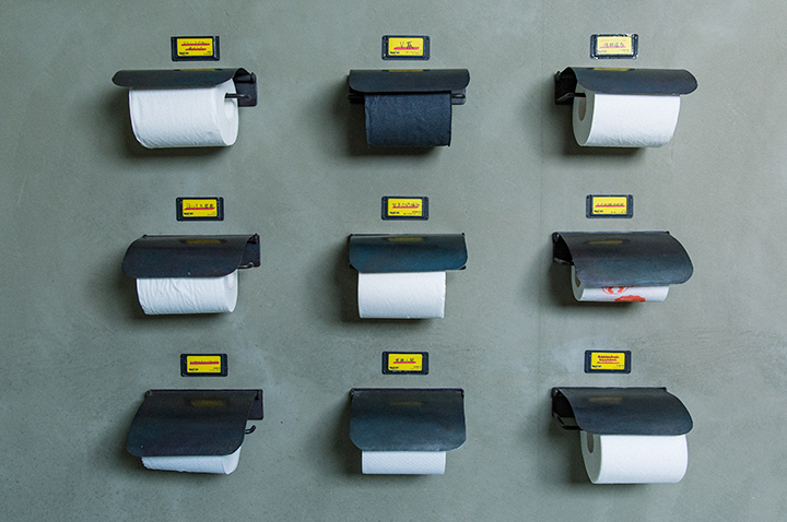 スタンダードな「無難人間」、真っ黒のペーパー「V系」など幅広い好みに対応していますトイレには常時9種類のトイレットペーパーを用意しています。お尻に合った“推しペーパー”を一途に使うも良し、その日の気分で選ぶも良し、山根セレクトの中からお好きなものを使ってください。ちなみに、エコを推進する花岡は10cm程度でお尻を拭くことができます。
