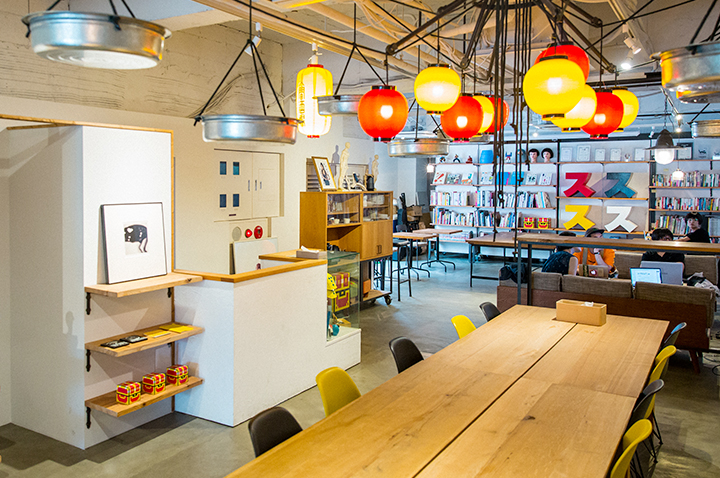 6年前にこの場所に移転した際、オフィスを「人間カフェ」と命名。元々、代表の花岡と山根がカフェで仕事をするのが好きだったり、人間メンバー以外の人に気楽に立ち寄って欲しいという思いから、にぎやかなカフェの雰囲気や居心地の良さを持った理想のオフィスを作りました。2年前、オフィスを拡張してより広々としたスペースになったため「ライター交流会」や「人間酒場」などのイベントスペースとしても活用しています。
