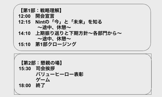 今回は「Nintの“今”と“未来”を知る」「上期振り返りと下期方針」の2つをメインコンテンツに設定。