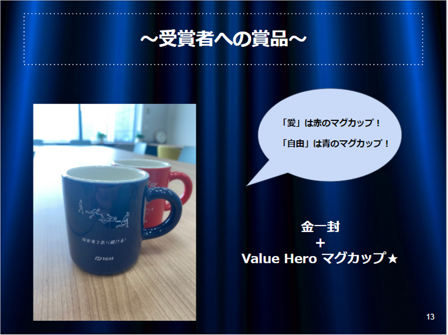 四半期毎に実施しているバリューヒーローとは、当社のバリュー体現者に感謝の気持ちと一緒に投票する評価制度です。今回はカスタマーサクセスから1名、アシスタント1名が受賞されました!いつもありがとうございます!さらなる活躍に期待です。