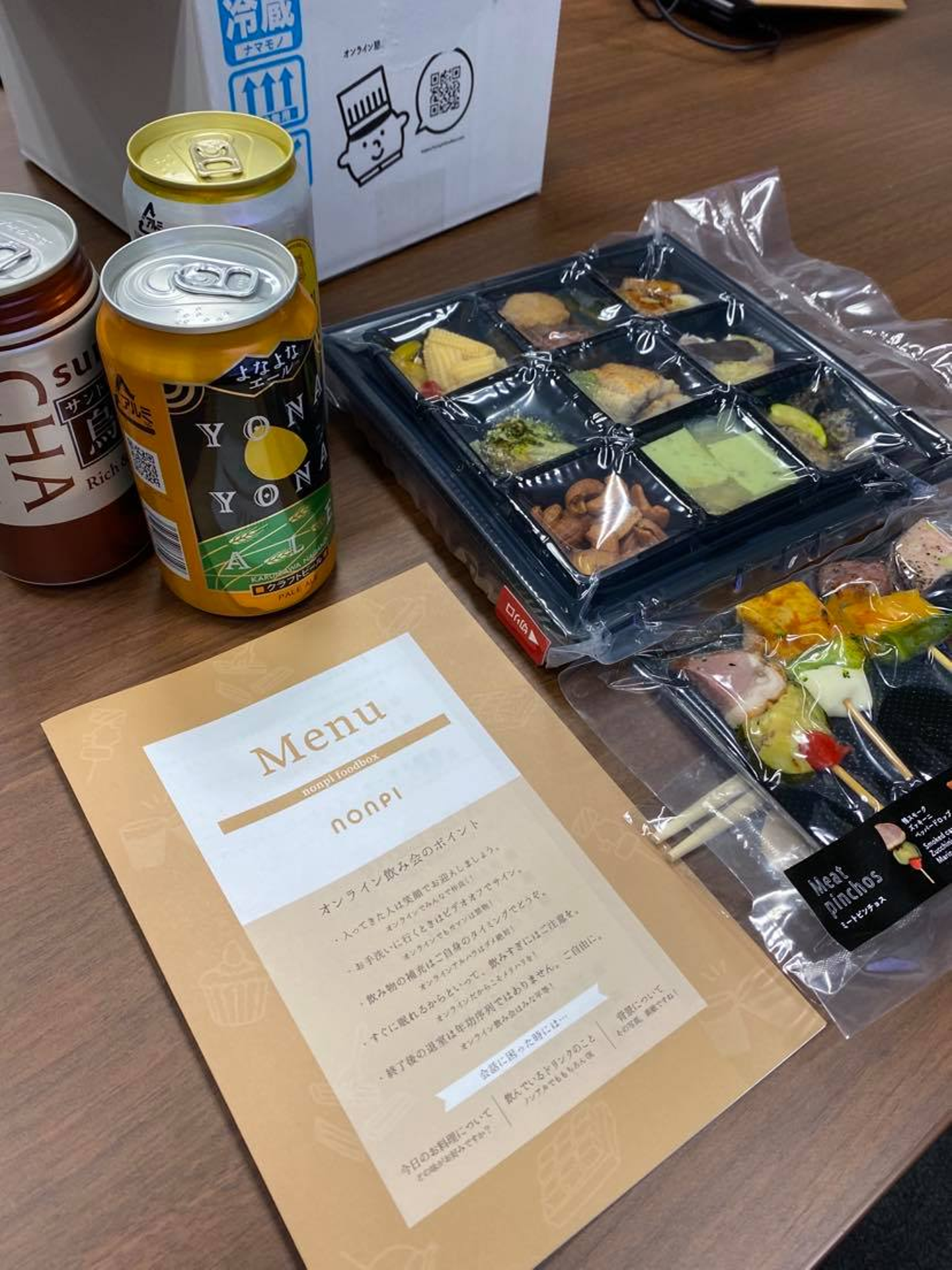 オンライン開催でも同じ食事やドリンクを楽しんでもらいたいという想いから、交流会用の食事は会社で全員同じものを手配しました!