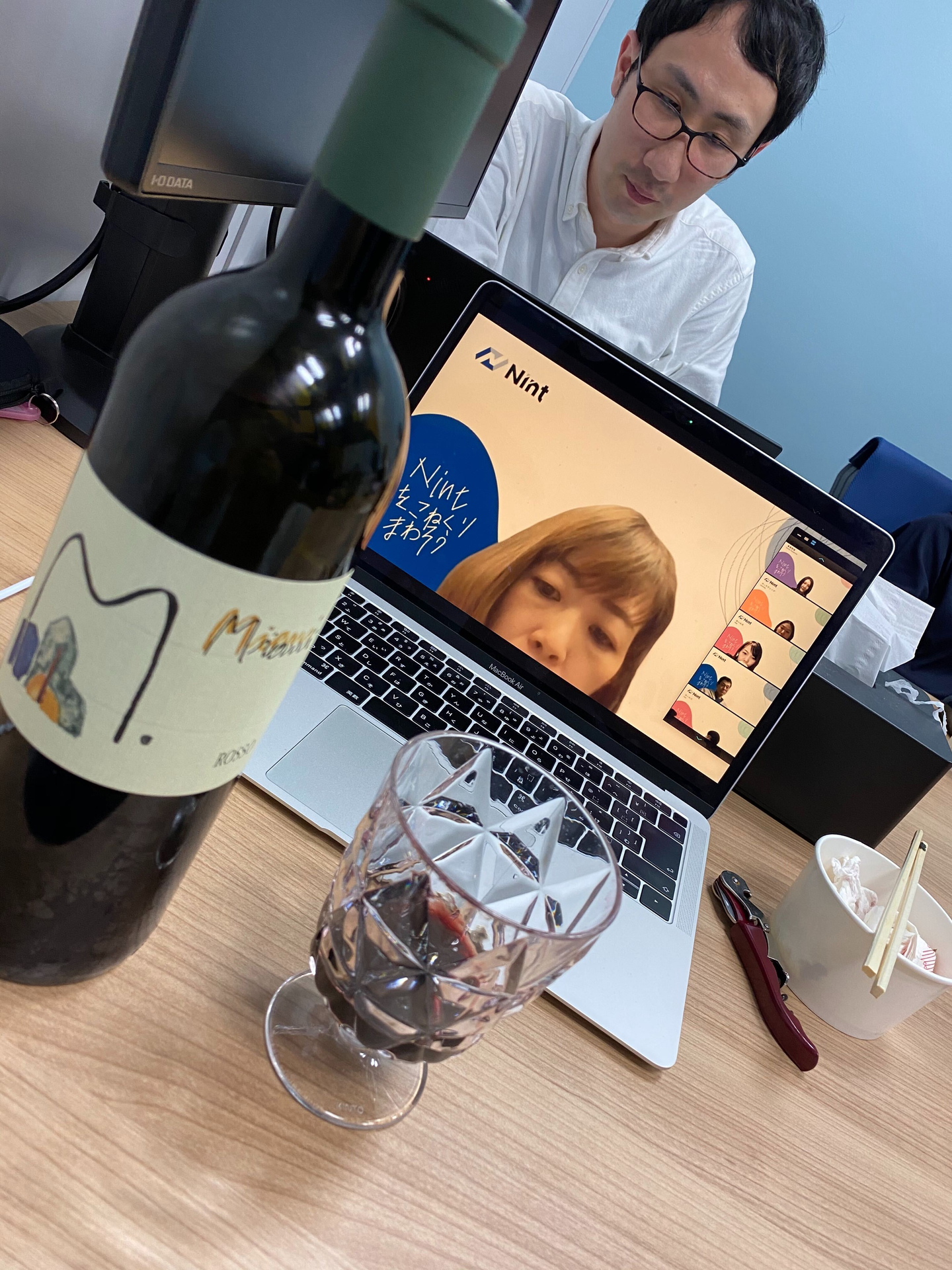 僕はワイン会の担当です。グループ代表の蘇がコロナ流行前にAmazonで購入したイタリアワインがデスクの下で熟成されているのを発見し、コロナ影響で当分は来日できないので代わりにテイスティング&評価&フィードバックをする事をお約束し、譲り受けました。代表、執行役員、ワイン好きのメンバーが集まり、ワインの素晴らしさや楽しみ方を語ったり、メンバーを知るいいキッカケになりました。