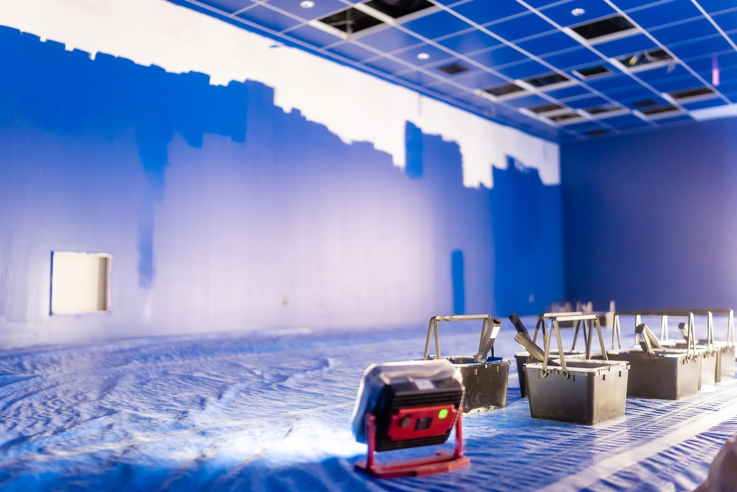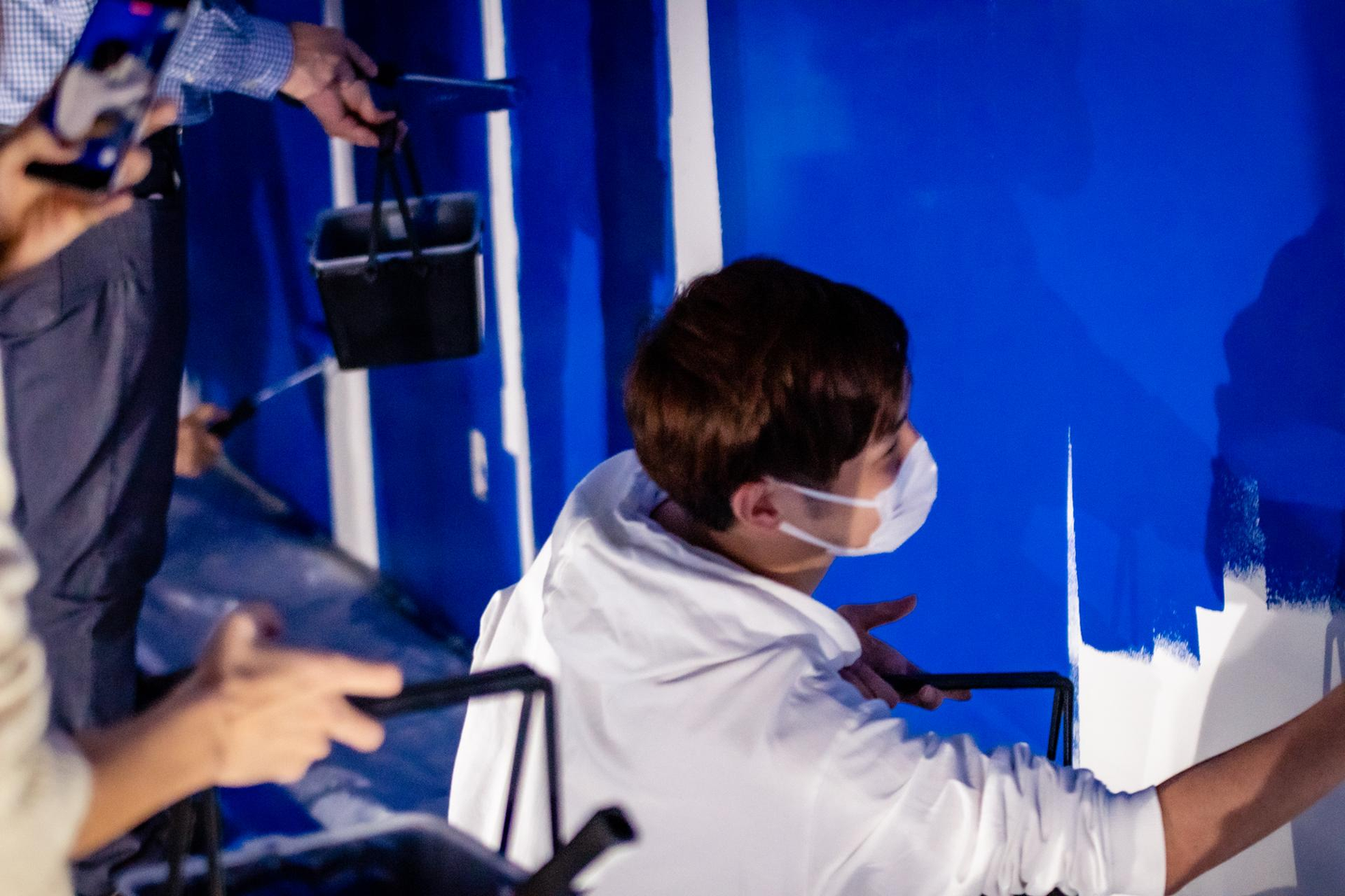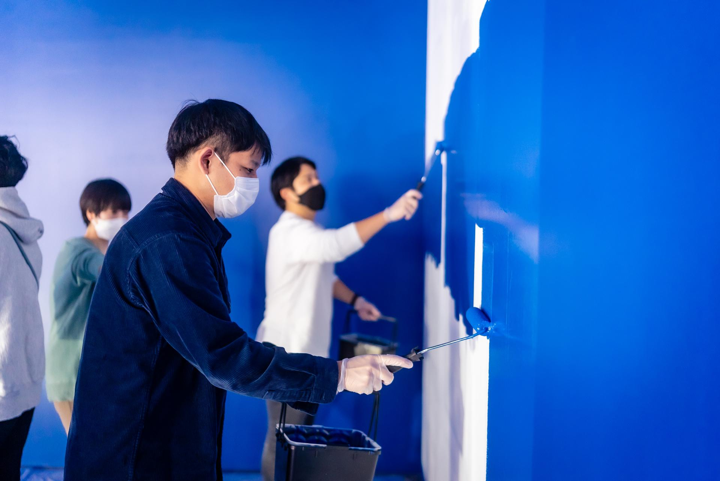 順調に皆で塗り進めていき、真っ白だった壁がどんどん青に染まっていきます。