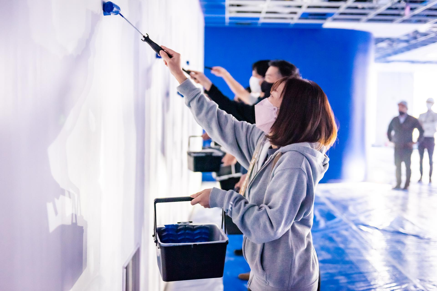 「せっかくこれから皆で集う場となる新オフィスを皆で愛着を持ってつくりたい、また、在宅勤務が多くなかなか顔を合わせる機会がない中でも、組織の一体感を醸成したい」という想いで、今回の壁塗りイベントを実施しました。