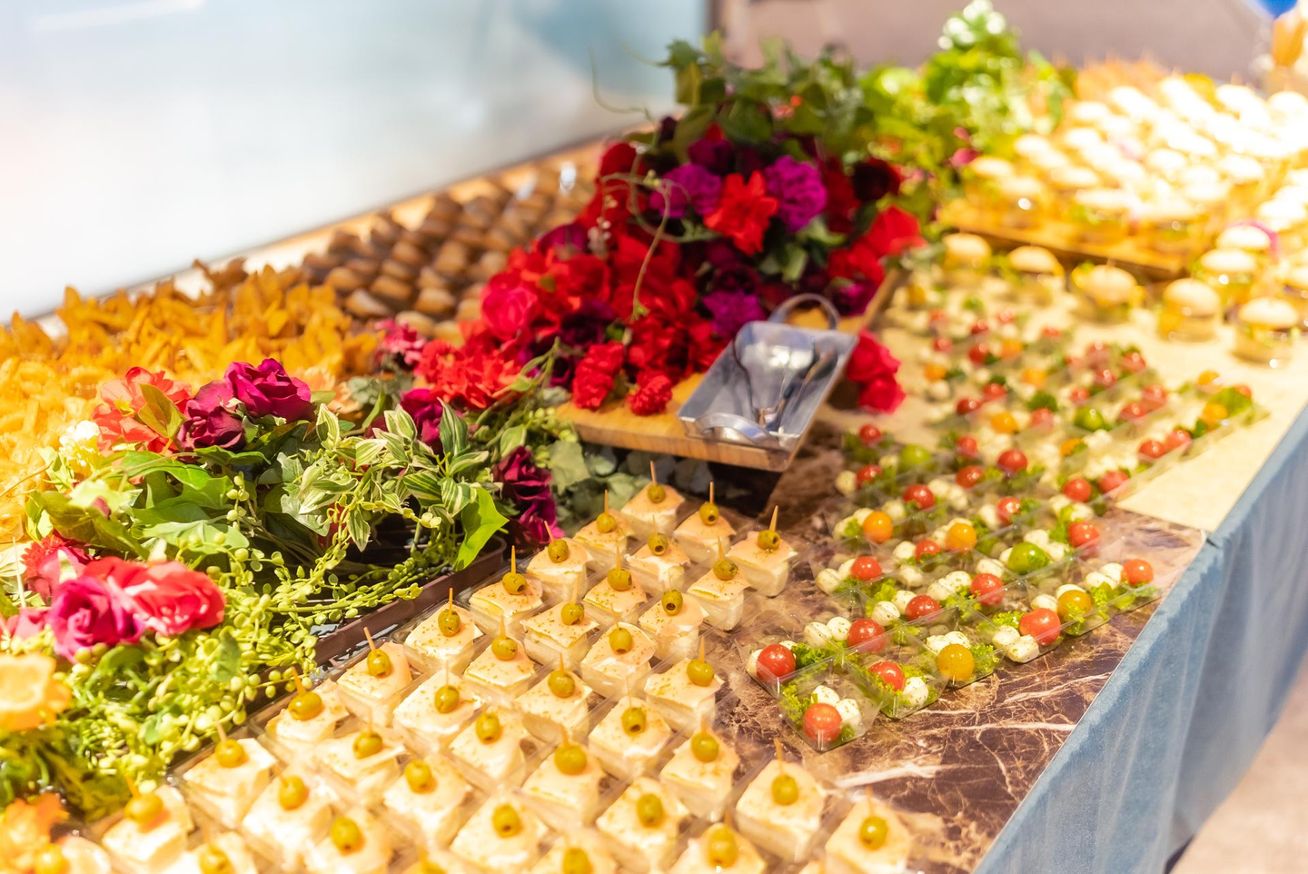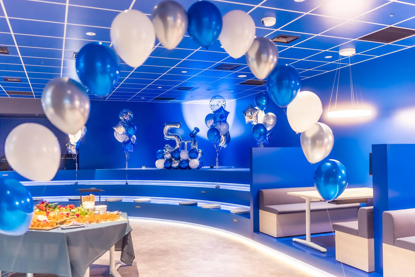 全員で記念撮影を実施したのち、最後のコンテンツは飲食を楽しみながらの懇親会です!今年の1月末に移転したばかりの新オフィスエントランスを飲食ブースとしてデコレーションし、見た目も可愛くて盛り上がりました!