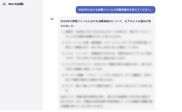 最近では、NintのデータをインプットしたAIであるNint AIがリリースされ、チャット形式で応答もしてくれます。
