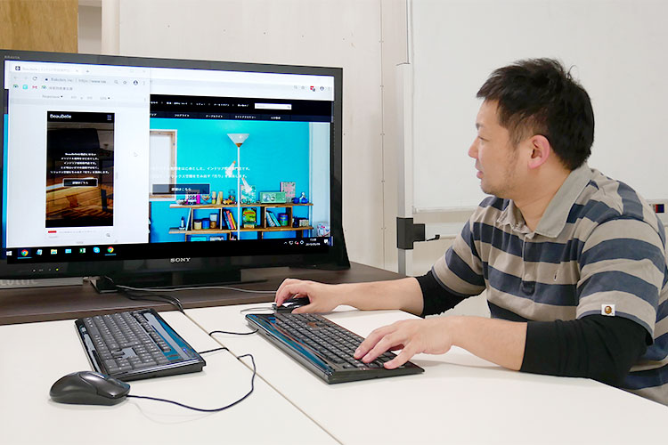 後任が育ってきたので、照明の担当は引き継ぎました。そして、再びWEBデザインナーの業務をメインで行っています。自社サイトのWEBデザイン、コーディングや、新商品の特集ページの制作などです。また、「販売促進・WEBデザイングループ」の責任者を任されています。