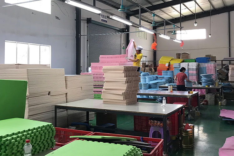 例えば昨年から売り出している「ジョイントマット」という商品があります。原材料はEVA樹脂を使っているのですが、この制作過程がとても面白いんですよ。最初は薄っぺらいシートなのに、機械に入れて熱を加えて焼き付けると膨張します。それを型抜きし成形する様子は、まるでお煎餅やクッキーを作るときみたいなんですよ。