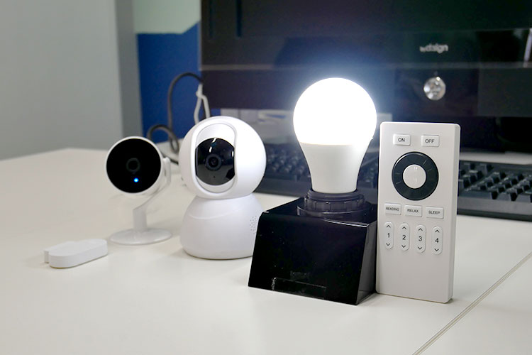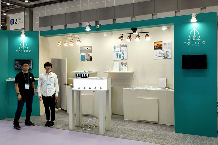 こちらですね!右側のスマート電球&リモコンは2020年1月の発売が決まっています。左側は開発を進めているスマートカメラです。これらはすべてTOLIGOというスマホアプリから操作することができます。