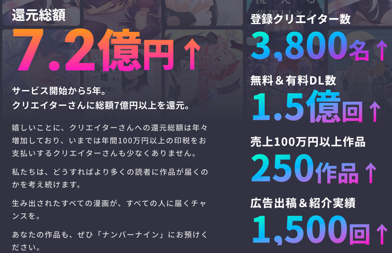 「ナンバーナイン」ではこの一年、より多くの漫画家さんに愛されるサービスを目指してLPリニューアルを始め、大小さまざまなことに挑戦してきました。