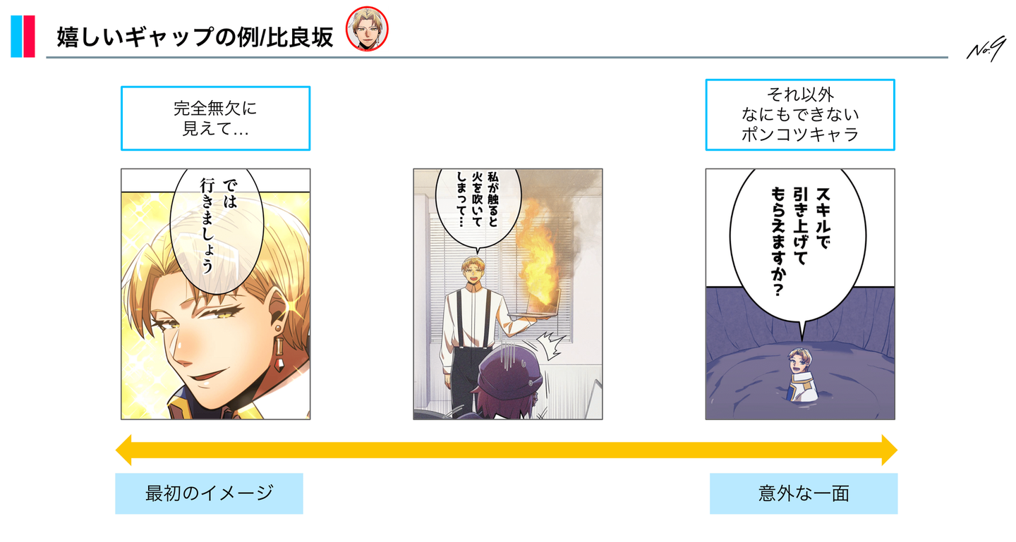 それは読者にとって”嬉しいギャップ”をつくること。キャラクターにギャップをつくることは既にやっている人も多いでしょう。しかし、大事なのはそれが読者にとって嬉しいギャップであるかどうか。嬉しいギャップは、読者の共感と憧れをうむことに繋がります」