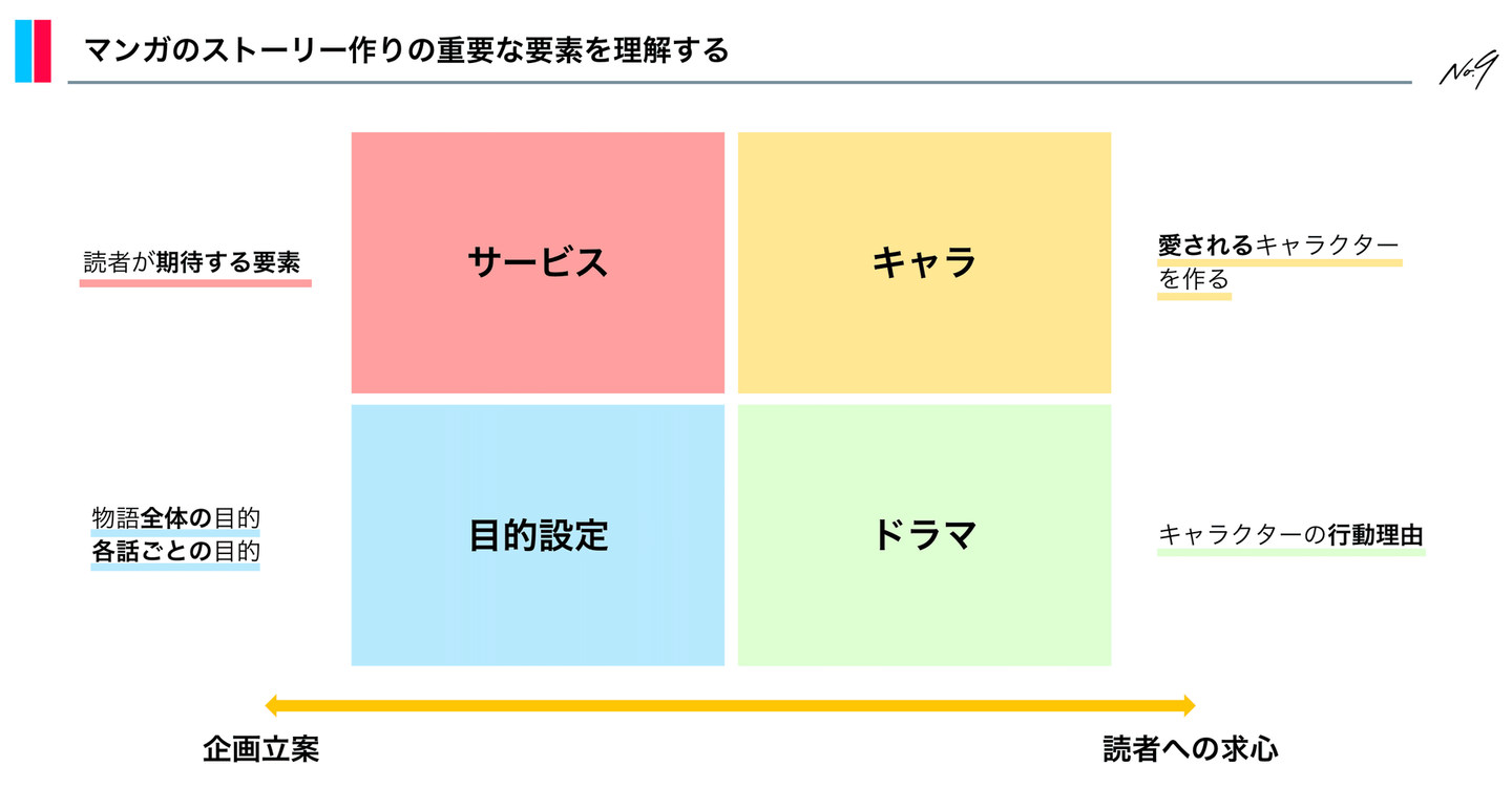 サービスとは、読者が求めていることを提供すること。まず、サービスをよく知ってもらわないと、読者はそもそも作品に興味を持ちません。サービスで満足してもらえたら、キャラクターに興味を持ってもらえるようになります。