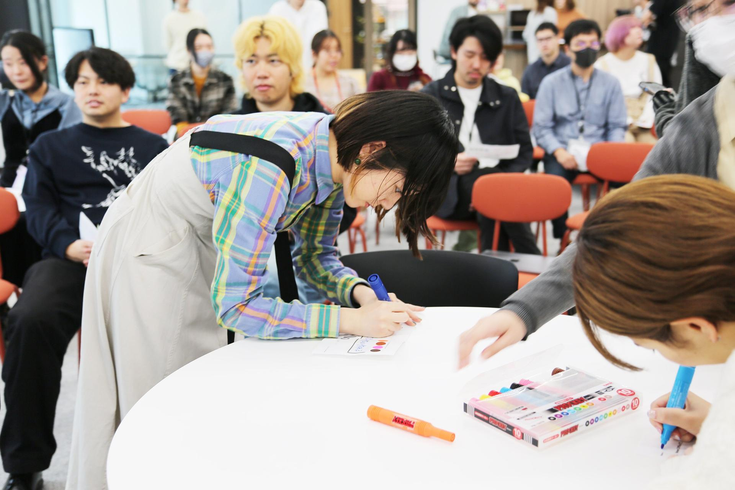 お披露目会後は、社員一人ひとりに「新オフィスでどうEvoるか」を書き込んでもらいました