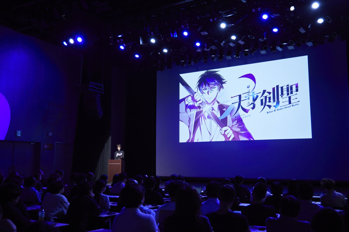 当日は吉田さんの進行のもと、いまのナンバーナインを象徴する選りすぐりの10作品をアニメーション形式でご紹介。2024年1月度の月間販売金額で1.2億円を記録したナンバーナインのオリジナルwebtoon『神血の救世主〜0.00000001%を引き当て最強へ〜』や『俺だけ最強超越者~全世界のチート師匠に認められた~』をはじめ、少年・少女、BLなど多ジャンルの作品の見どころを担当編集のコメント付きで紹介しました。