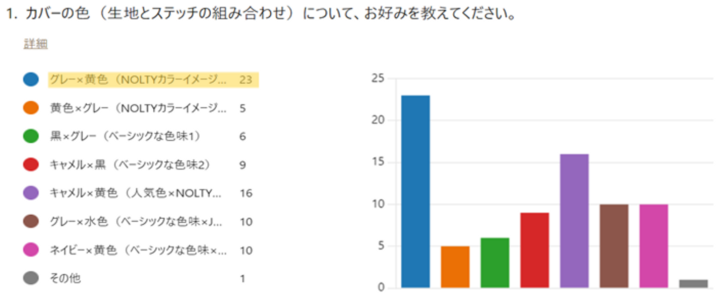 手帳の耐久性向上において大事な手帳カバー。カバーがあるのとないのでは、見た目の高級感も大違いです!今回は好きな生地&好きな色でステッチを入れてカバーを制作できるということで、NOLTYのブランドカラーや人気色から候補を作成し、社員にアンケートを取ってみました。