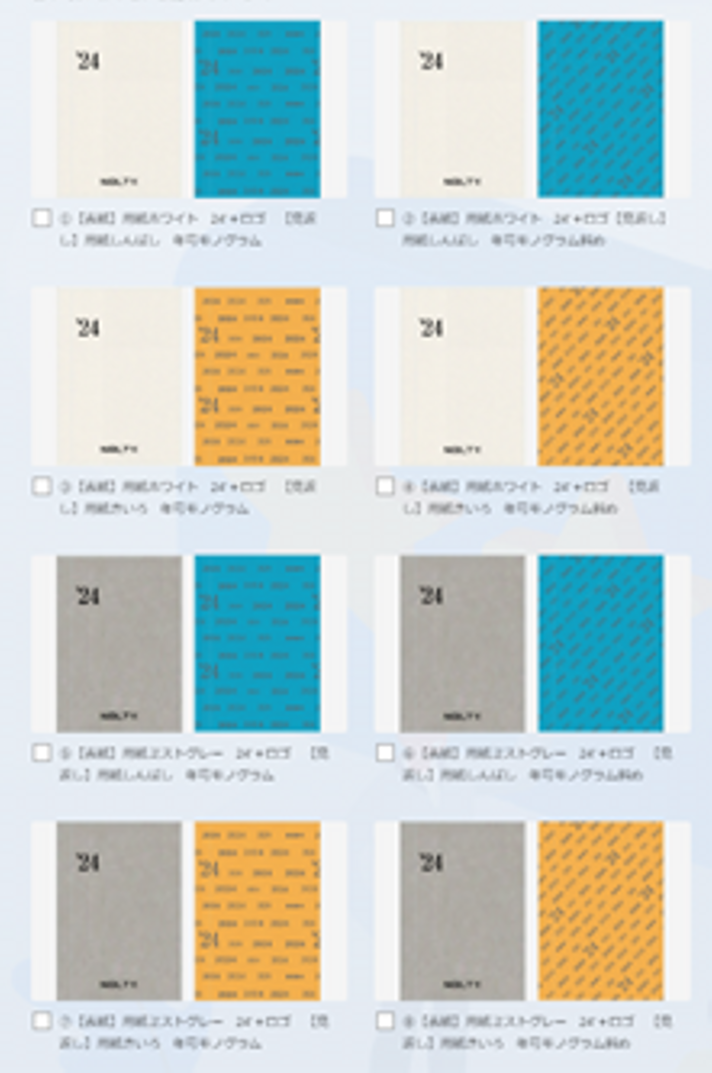 カバーを外しても使えるよう、手帳本冊の表紙もデザインしていきます。表紙と見返しをあわせた20パターンを作成し、こちらも社内アンケートを取りました。