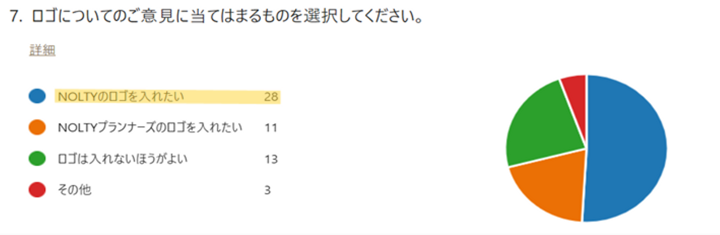 「カバーにロゴを入れるか入れないか。入れるとすれば、ブランド名『NOLTY』か、社名『NOLTYプランナーズ』のどちら?」という質問ですが…