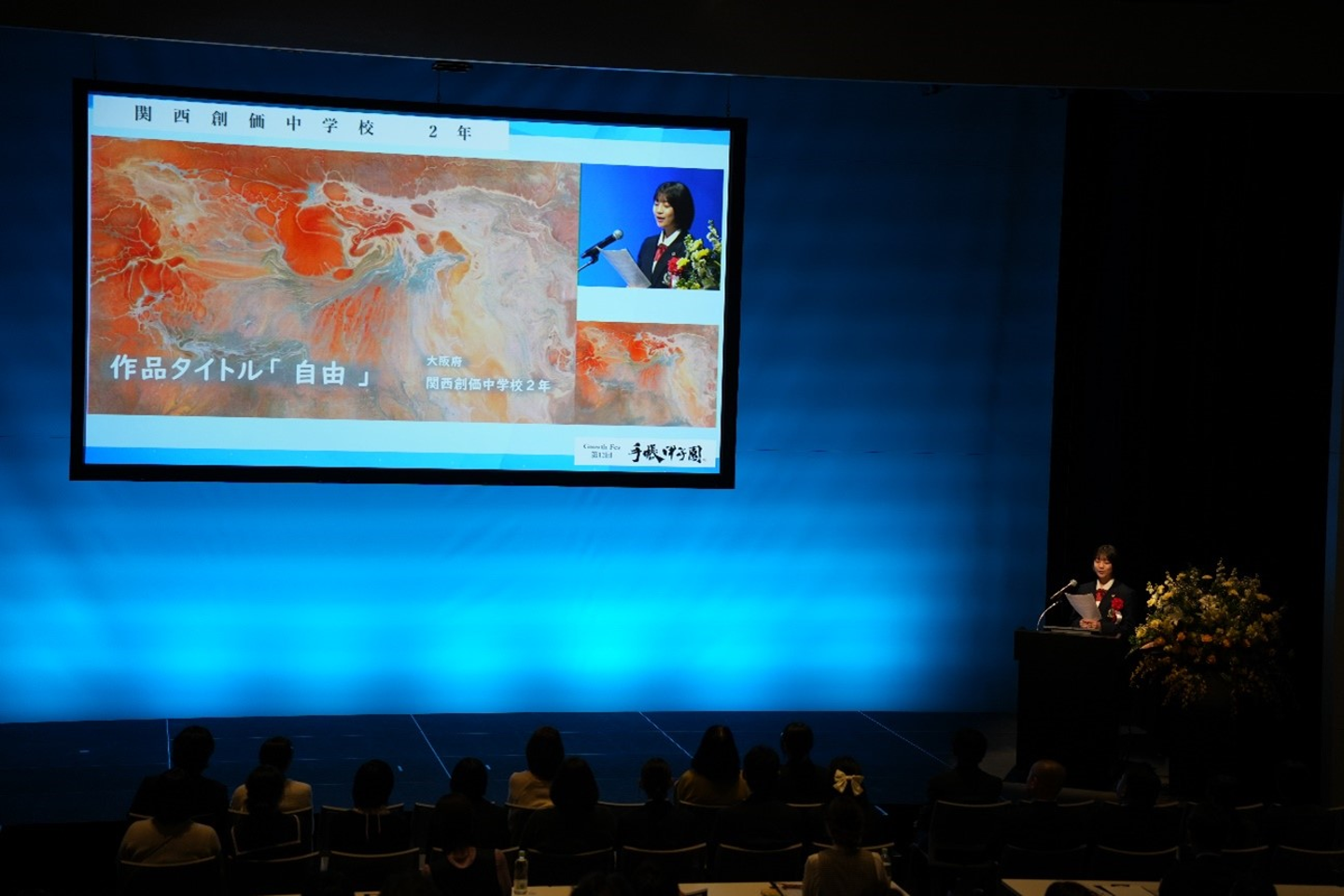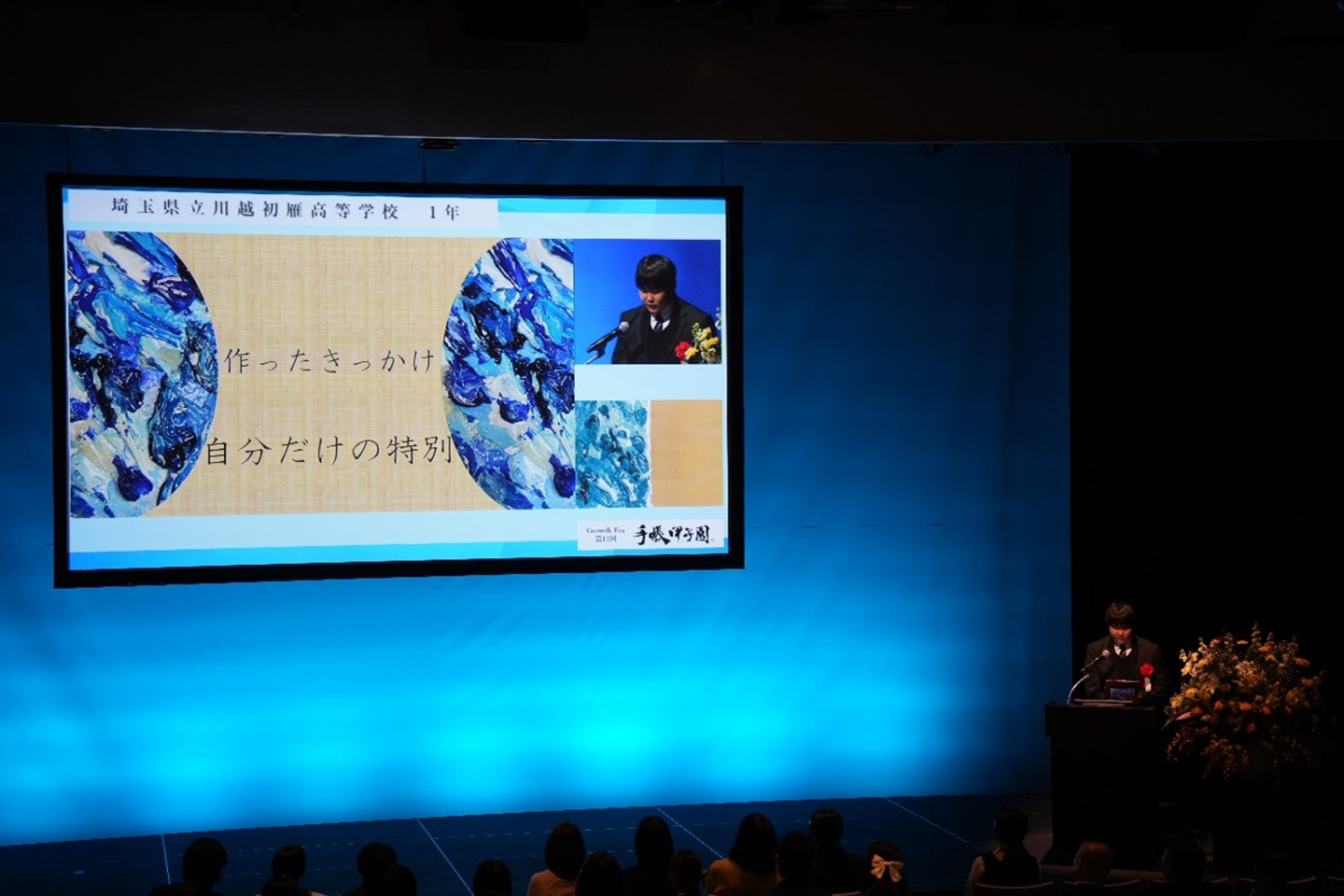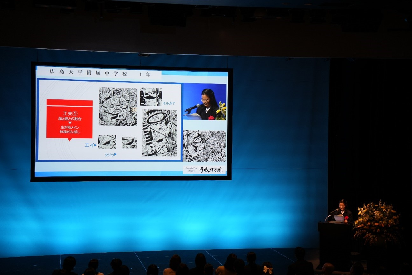 プレゼン前に放映された、クラスメートからの応援動画で少し笑顔も見せてくれました。流れ星を観て、「見えなくても星はひそかにそれぞれ輝いていて、それは人も同じ」と感じたことからこの作品を描かれたそうです。作品はもちろん、プレゼンのスライドに登場するオリジナルイラストも素敵でした!