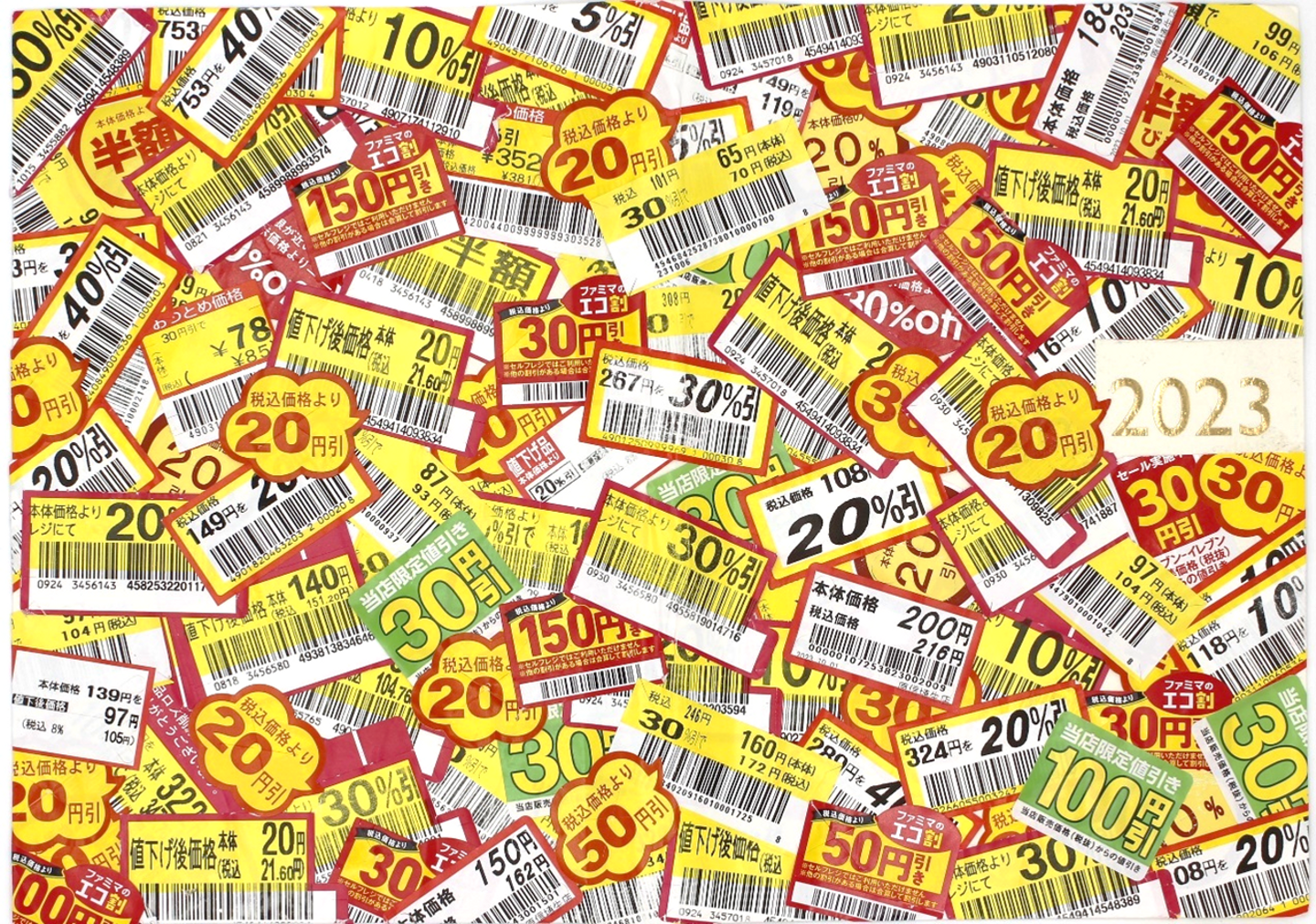 たくさんの値引きセールが貼り付けられたインパクト大の作品!プレゼンテーションでは「どのシールがどのスーパー・コンビニか、お気に入りはどれか」の解説もあり、会場から笑いが漏れました。おつとめ品を探して家計をやりくりされているご家族への感謝や、食品ロス防止=SDGs!といった内容も盛り込まれた、とても楽しく素敵なプレゼンでした!