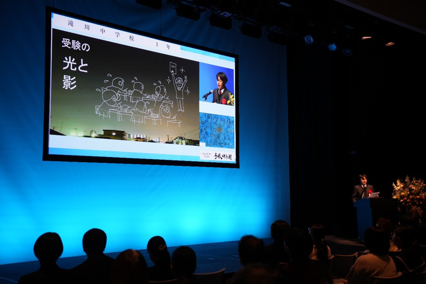 リハーサルでは、壇上で本番さながらにプレゼンを行っていただきます。「緊張してます…」とおっしゃる生徒さんが多かったですが、舞台上ではみなさんとても堂々されています!今日までにたくさん準備・練習されてきたんだろうなと感じます。