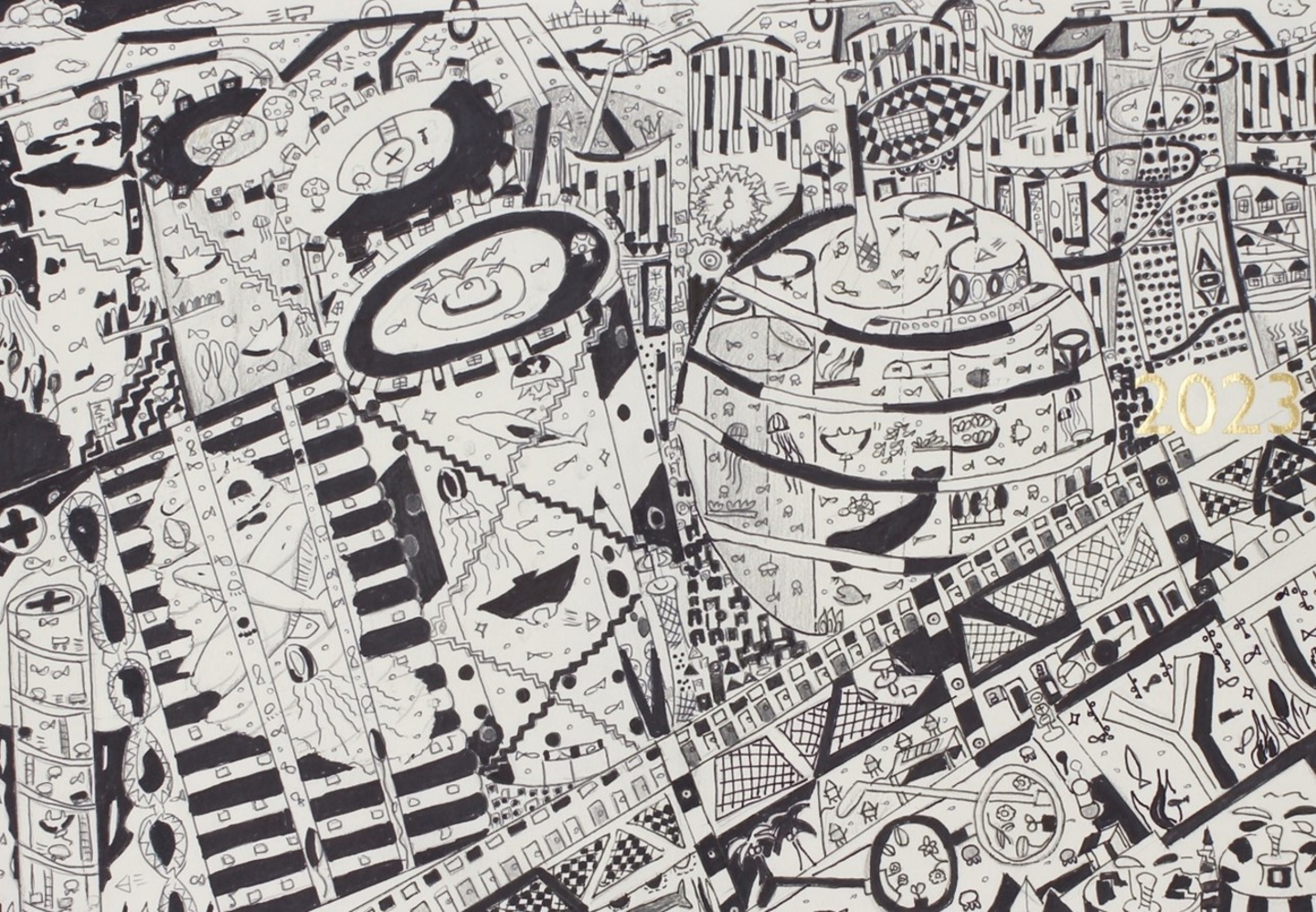「街を描くことが好き!」「水族館が好き!」という思いから描かれたこの作品、描く楽しさが作品から伝わってくるようです。ちょっと不思議なタイトルは「水槽から光が出ているから街灯がいらない」ということなのだそうです。プレゼンを聞いた上でさらにじっくり鑑賞したくなる作品です!