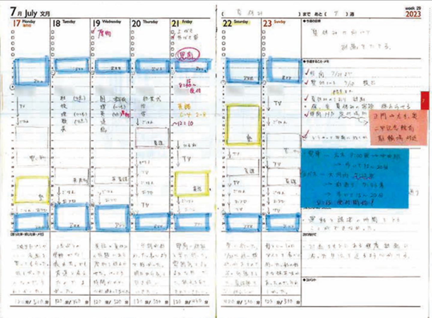 自分自身の「面倒くさがり」「忘れっぽい」「計画性がない」といった性格と向き合い、「蛍光ペンを使って手軽に書く」、「メモをたくさん書きつつも文を簡略化する」「自分の行動を手帳に可視化」など、しっかりと対策を考えて手帳を使っているそうです。今日から真似したくなる手帳活用術です!