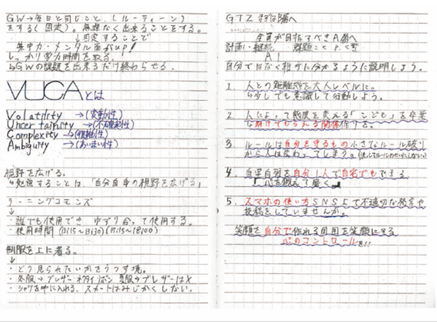 ⑤ 常総学院中学校 2年生「まずはメモを取り、充実した生活の出来る手帳に。」