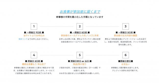 「オンライン送別会を実施するから参加者の自宅にケータリングを届けて欲しい」