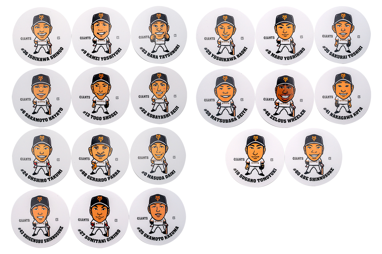 増田大輝、坂本勇人、丸佳浩、亀井善行、戸郷翔征、菅野智之、小林誠司、大城卓三、岡本和真、炭谷銀仁朗、吉川尚輝、桜井俊貴、石川慎吾、中川皓太、重信慎之介、Z.ウィーラー、松原聖弥、G.パーラ