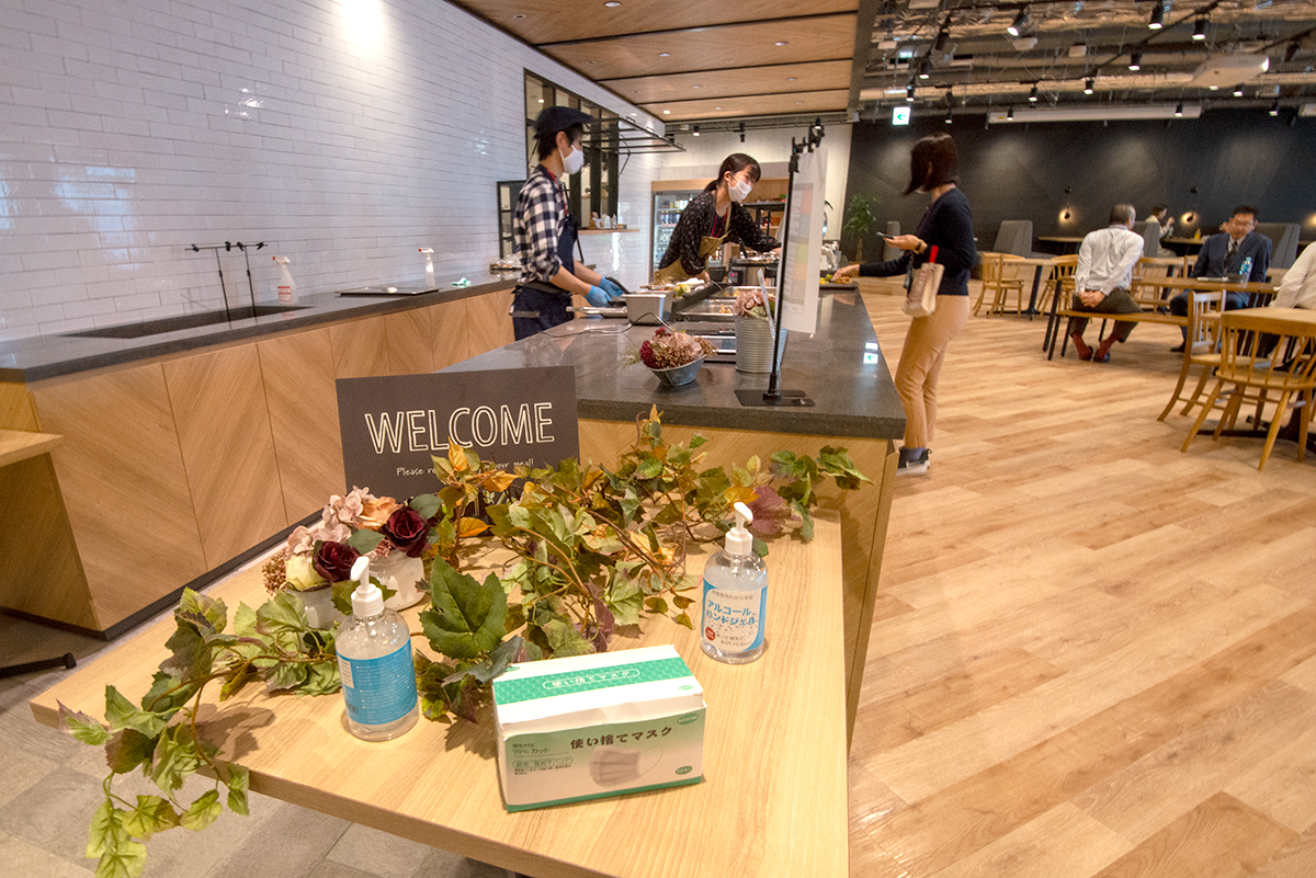 新井様:移転当初、社内ランチを始めた時は別の企業さんにお願いをしておりましたが、移転後に一段落したあたりから、より社員の健康や要望に沿った場所にしたいという想いで、ホライゾンラウンジの改革を決めました。一度は厨房を構えて、作りたてのごはんを提供することも検討しましたが、スペースの問題やビルの制約もあり断念しました。