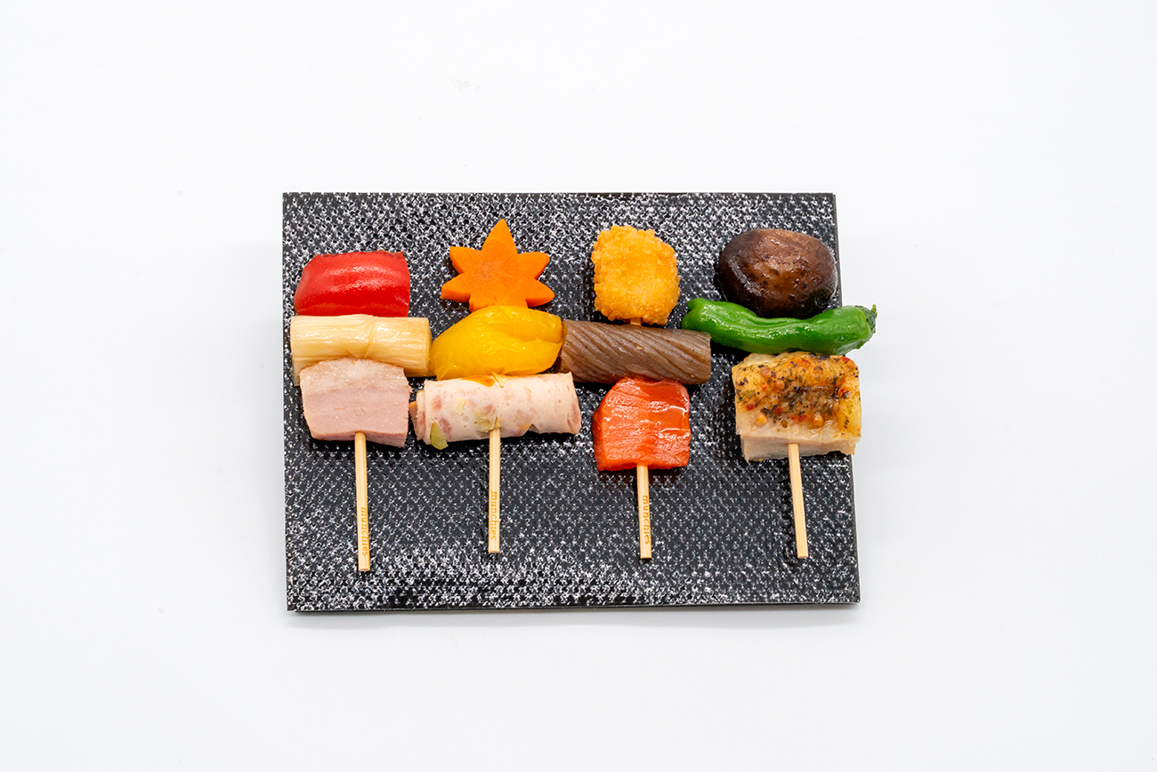 nonpi foodboxで定番のピンチョスも「みやび流」の和風に。ひとくちでパクっとマリアージュをお楽しみください。