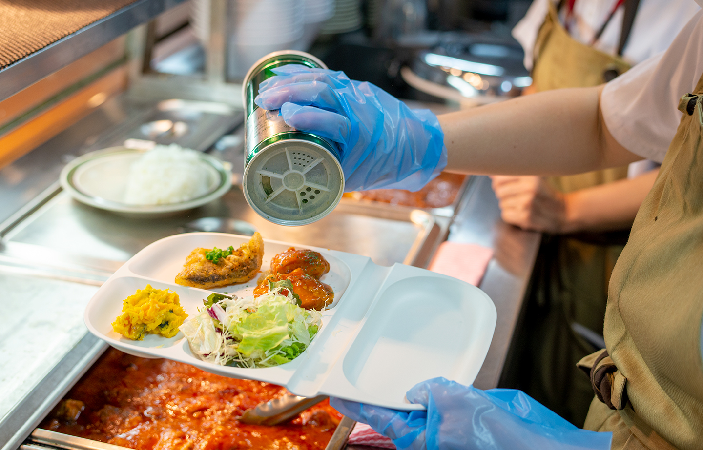 おかず、丼、カレーなどの食事は現地調理をせず、ノンピのセントラルキッチンで調理したものをお届けいたします。その為、現地で料理人雇用の必要もなく、食材の仕入れも不要となり、厨房機器を最小化と共に使用電力を抑えることができる他、大型の排気排水設備も不要なので大幅なコストダウンが可能となります。