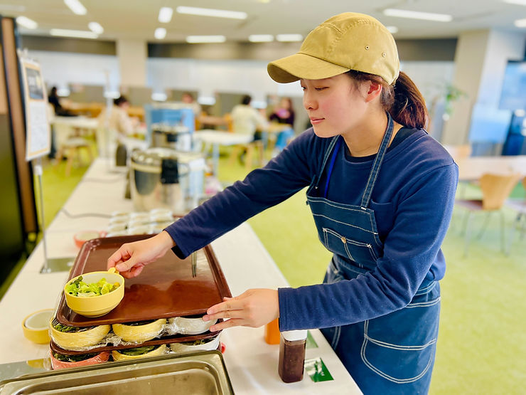 食べることが好きで、学生時代に通っていた学食の魅力に惹かれたことがきっかけでノンピへ入社。普通の社員食堂にとどまらず、空間や体験を大切にするノンピの姿勢に共感し、店長として現場に立っています。特に、お客様が喜ぶ瞬間にやりがいを感じ、季節の飾り付けなど、小さな工夫を重ねています。細かな気配りが、日々の営業の中でお客様の笑顔に直結し、その反応が次の工夫へのモチベーションになっています。