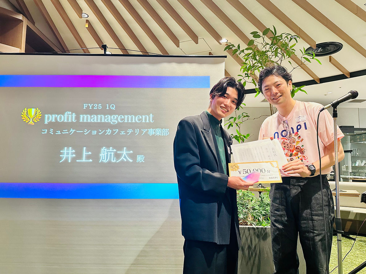 ※2025年3~5月度MVP受賞の様子(管轄拠点の売上・利益ともに予実を大幅に上回り、プロフィットマネジメント部門でMVPを受賞)