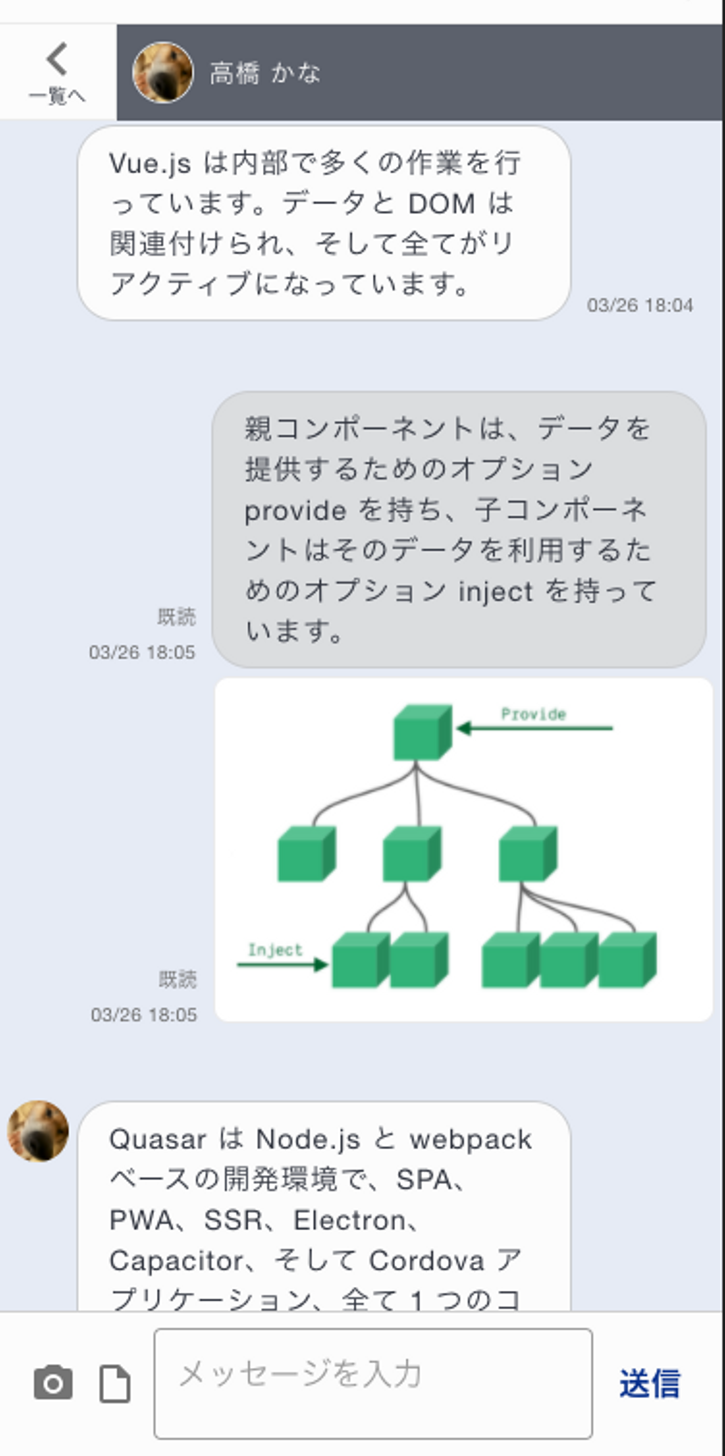 アプリの実装においては、画像送信時に圧縮などの変換処理を入れていたり、画像を拡大表示するためのコンポーネントを入れていたりといった部分で、特に画像送信後に既読がしっかり付かないまたは逆に既読じゃないのに既読になるといった問題が連発して、時間が掛かりました。