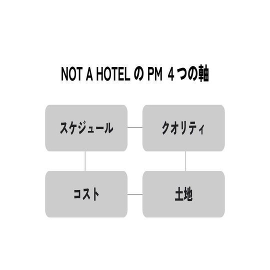 PMが担う業務は、「スケジュール管理」「コスト管理」「クオリティの向上」「土地のオーナーや地域住民とのリレーション構築」という大きく4つの軸に分類されます。