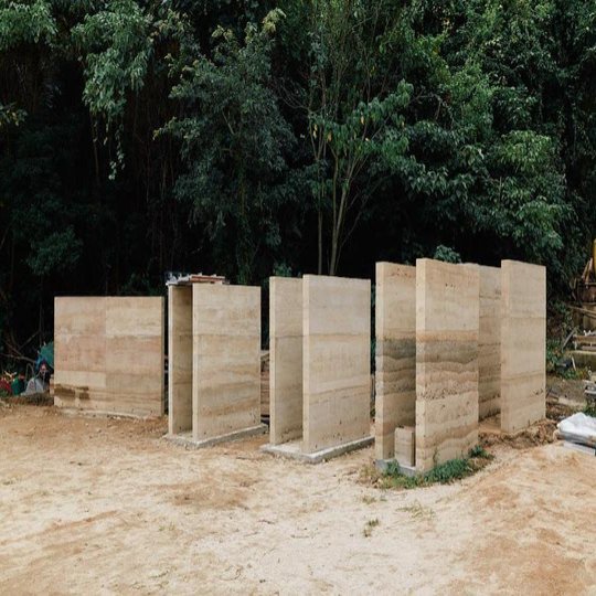 BIGが最初に描いてきた提案のなかに「ラムドアース(版築壁)」がありました。土を使い層状に締め固めてつくる、土壁に近い古来からの工法なのですが、「この島の土を使って、この島でしか実現できない建築をつくりたい」と彼らが提案してくれました。