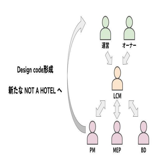 その後、建物の方向性が定まると、設計者とともに設計プロセスを並走し、建設フェーズへと移行しても施工者、設計者と開業まで並走しながらNOT A HOTELのものづくりをディレクションします。さらに開業後も、ライフサイクルマネージャーに対して維持管理に関わる技術的なサポートを行うほか、ホテルスタッフと連携し、現場から上がってくる改善・要望などを、設計・施工側へフィードバックしていきます。