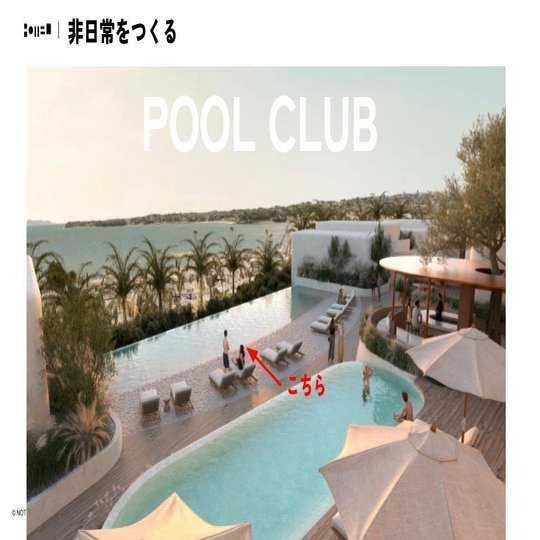 例えば、これから三浦半島で施工が始まる「NOT A HOTEL MIURA」。この拠点では、本物の砂を敷いたプールをつくろうとしているのですが、実は本物の砂を敷いたプールの事例は、日本に一箇所しかありません。