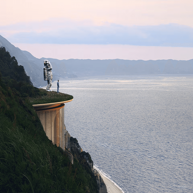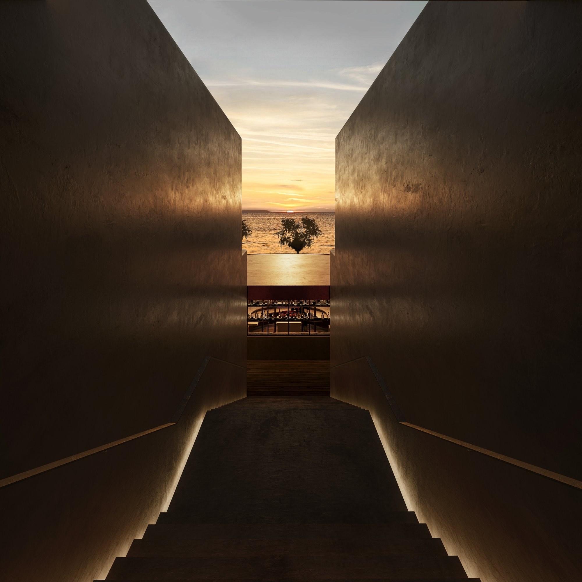 例えばこちらは、NOT A HOTEL MIURAのプロジェクトの一枚。2階の客室からプライベートビーチへ降りていく階段のシーンです。
