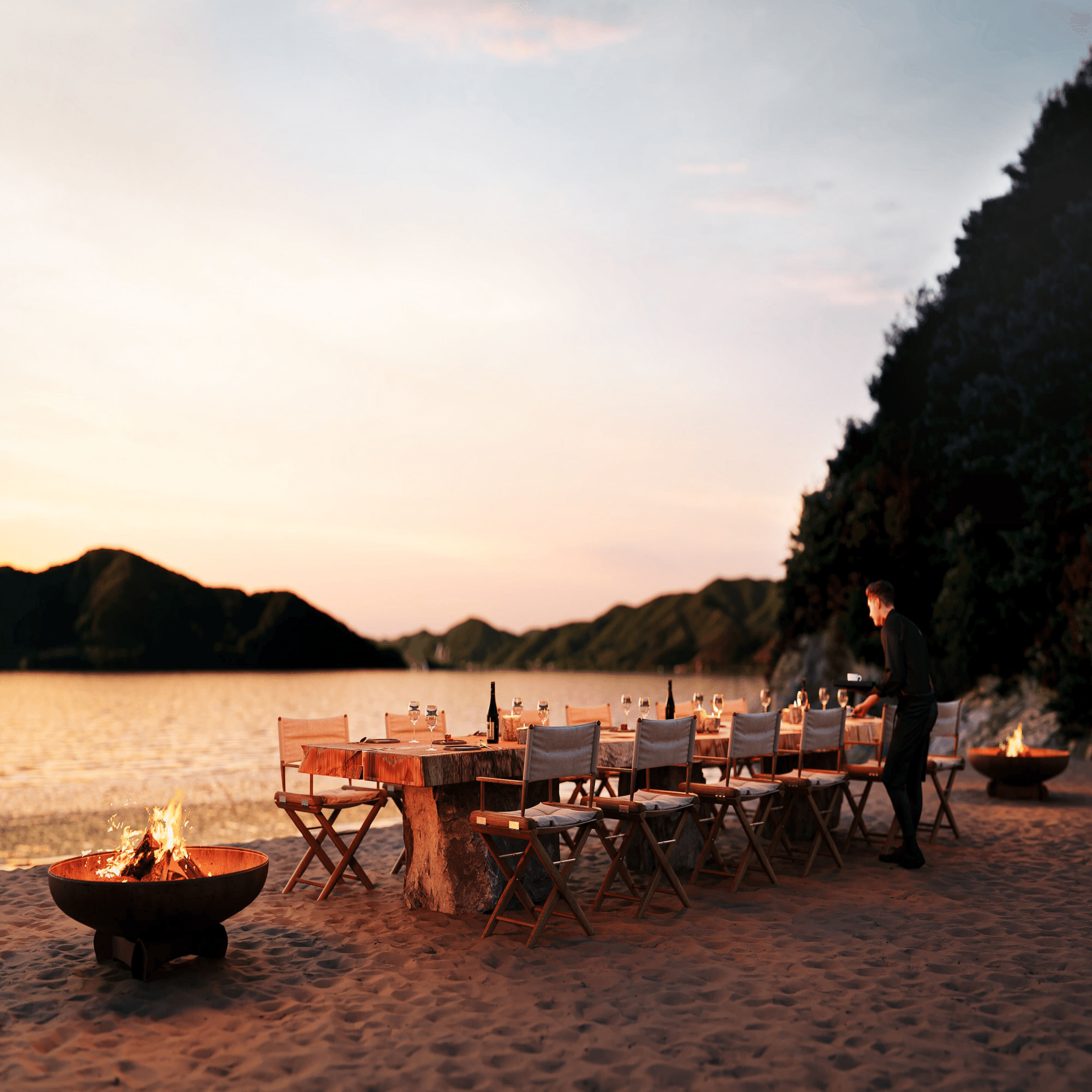 NOT A HOTEL SETOUCHI、プライベートビーチでのディナーシーン